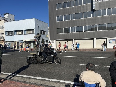 弊社の前を先頭が通過しました。