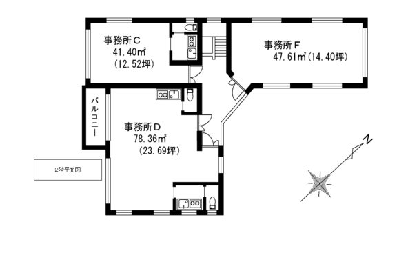 | 物件種別 | 貸事務所 | 構造 | 鉄骨造2階建て 2階 |